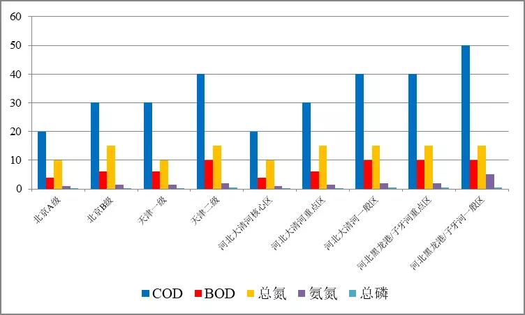 圖1 京津冀地區水污染物排放標準(直接排放)